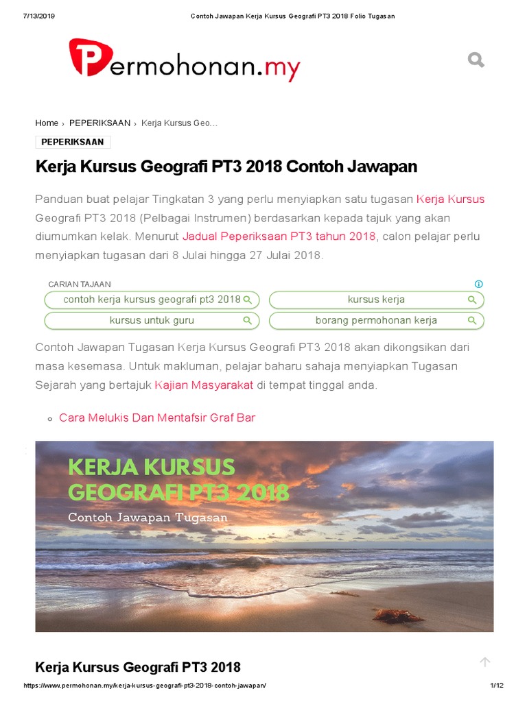 Contoh Jawapan Kerja Kursus Geografi Pt3 2018 Folio Tugasan Pdf